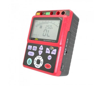 Мегаомметр цифровой ПрофКиП Е6-37 является одним из лучших в своей ценовой категории прибором. Мегаомметр ПрофКиП Е6-37 позволяет производить измерения сопротивления изоляции проводки и различных электротехнических устройств, источников питания, трансформаторов и генераторов. Измеритель сопротивления изоляции может использоваться в мастерских по ремонту электрических устройств. Мегаомметр ПрофКиП Е6-37 производит измерение сопротивления в пределах от 0 до 1000 ГОм, используя для этой цели 5 режимов с номинальным напряжением 250 В /500 В /1000 В /2500 В /5000 В. Измеритель сопротивления изоляции имеет возможность калибровки.
